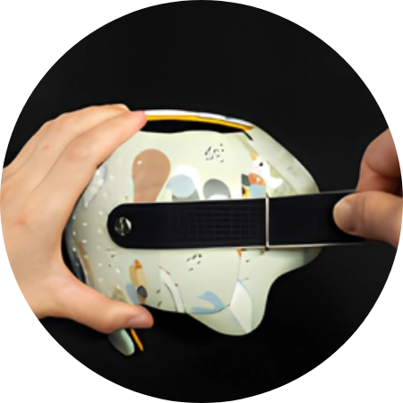 ヘルメットを脱着する役割。基本的に、治療中は一定位置でバンドを止めます。突出部が成長したり、赤みが発生した際のサイズ調整や圧力調整弁としても機能します。